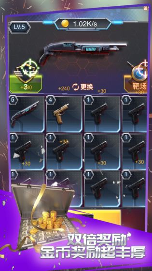 2、你可以解锁使用几十种精美独特的枪械武器,并且还能合成更高级的器械。