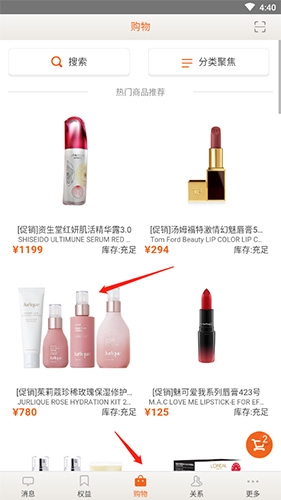 1. 开启软件,轻点“购物”选项,接着挑选自己想要购买的商品添加至购物车。