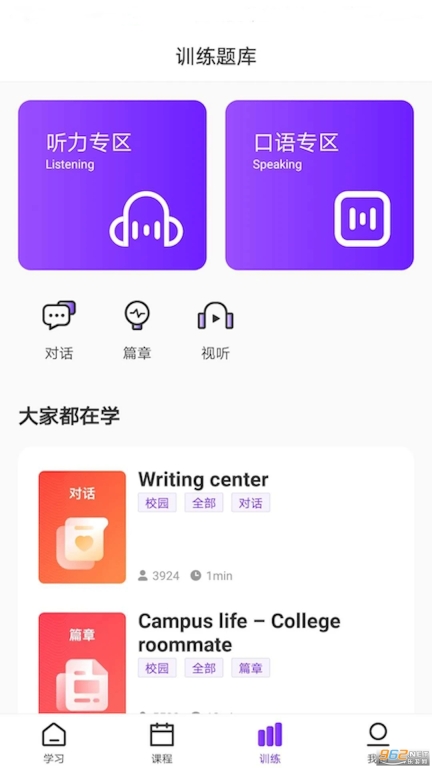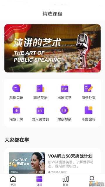 为大家带来Utalk视听实训,这是一款极为专业的英语学习软件。它涵盖备赛备考、出国留学、校园口语、商务外贸、职场英语等七个不同内容板块,助力用户精准学习英语,迅速提升自身英语水平!