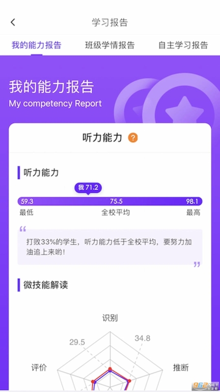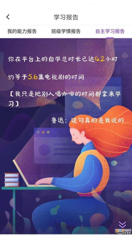 设有学习报告板块,用户在此板块内能够查看自身各类学习报告,知悉自身学习状况。