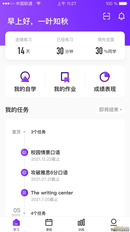 提供成绩表现版块,在这里用户能够看到自己的成绩信息,激励自己努力学习;