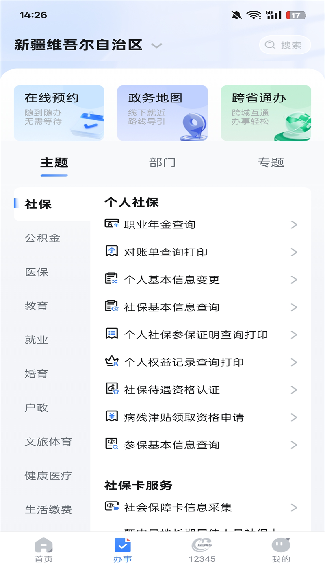 1. 首页功能:于首页处,用户能够对社保、医保、公积金等常见热门的办事功能模块进行快速点击操作。