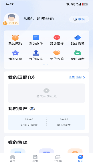 4. 我的功能:用户在此处可查看自己过往办理事项、投诉进度以及预约详情等内容。