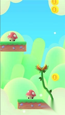 1、操控紫色蘑菇角色,看准时机,点击屏幕跳跃,避开食人花,收集金币,跨越平台。