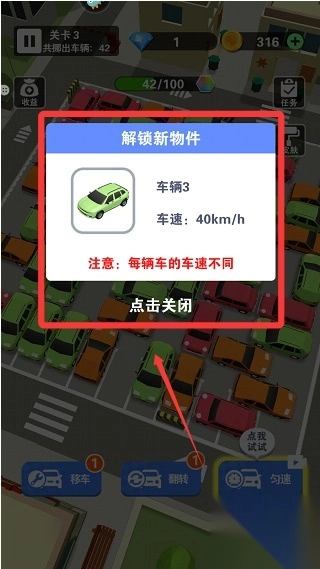 2. 玩家操作时需拖动汽车,每辆车仅能前后移动,务必依据现场实际位置灵活判断,以防出现堵塞或撞车情况。