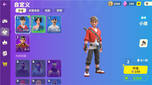 2、点击服装图标可以切换不同的忍者,右边的粉刷图标是自定义。