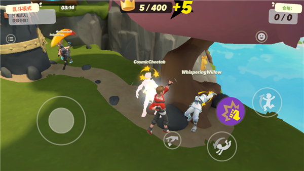 多人联机开启派对乱斗,进入同一战场开始激烈斗争。