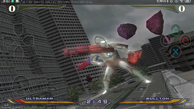 基础战斗操作:通过左摇杆控制角色移动,□键触发普攻、△键释放重击、○键使用投技,不同按键组合可形成基础连招(如普攻 3 次接重击);能量槽满后按 R1 + 对应按键释放必杀技(如赛文按 R1+△释放 “集束射线”),必杀技可造成大量伤害并触发特写动画。