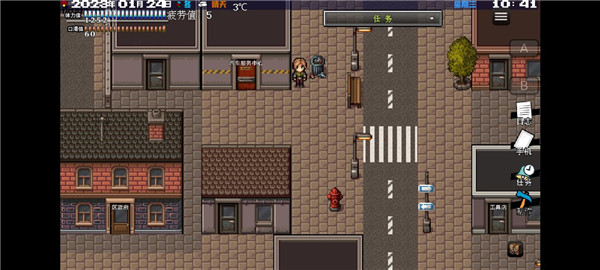 核心生存与资源玩法:每日优先保障基础生存,按 “打工赚钱→采购物资→制作食物” 流程分配时间,初期推荐小诊所打工,收入稳定且风险低;资源分类管理,食物、药品优先储备,建材用于庇护所升级,稀有矿石留作武器制作;关注状态面板,疲劳值过半及时休息,健康值低时立即使用药品,避免猝死风险。