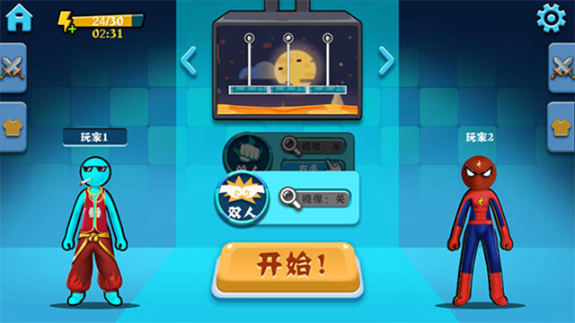 3、利用各种不同的武器来造成伤害,选择不同的火柴人。