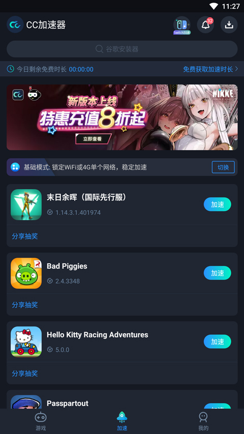 1、首先Farlight 84国际服,然后打开加速器,如CC加速器;