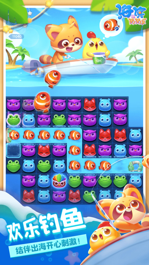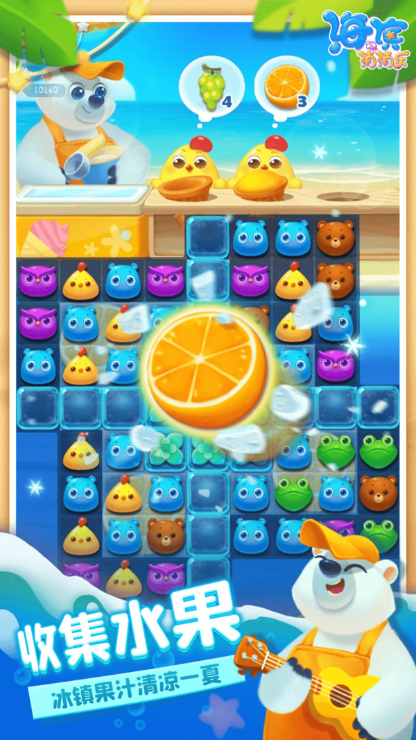 2、游戏有有新鲜的消除玩法,绝对会带你全新的体验。勇斗坏章鱼,丰富多彩的娱乐项目,海滨假日活动多