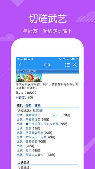 在此处,涵盖修炼、武功、装备、比武、竞技场、征战、武道会、帮派、修真、宠物、法宝、转职、皇宫等丰富多样的玩法,静候你来谱写属于自己的江湖传奇!