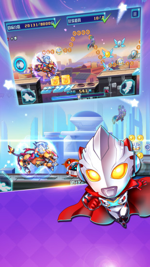 1. 酷跑超人奥特曼别具一格的BOSS系统,能让你尽情感受以“奥特光线”横扫小怪兽的畅快之感。
