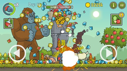 5、玩家可以用金币来升级食物的数量或者寻求伙伴帮助。