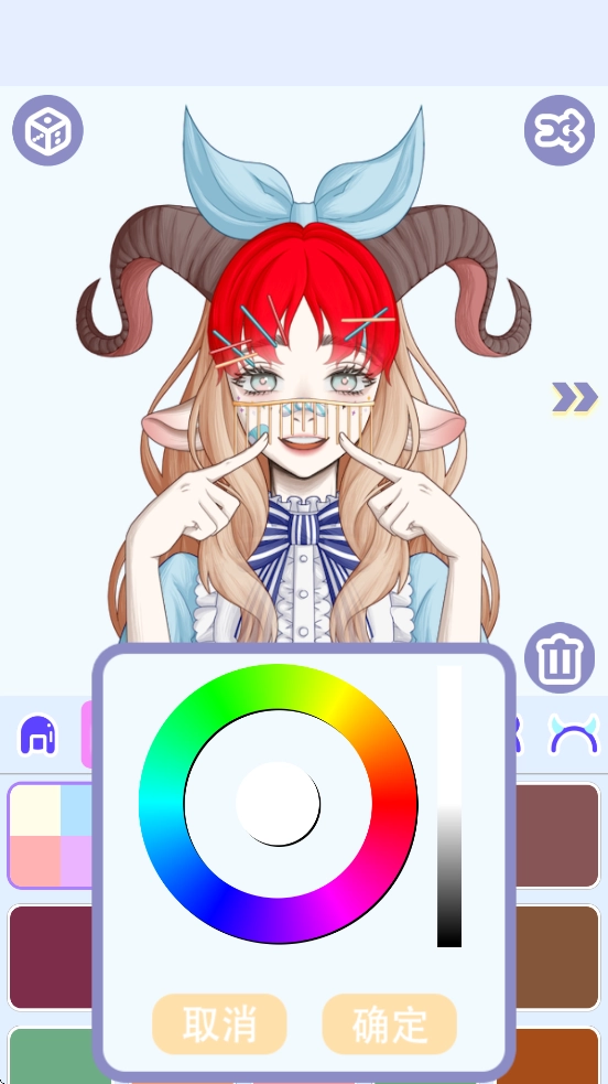 自由搭配:在衣橱中为选定的怪物女孩搭配服装、发型、妆容和饰品。