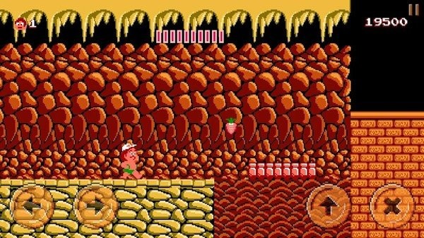 按B键无限投射,支持2连射。主角朝前方投射,石斧沿平抛运动轨迹飞行,最后落到地面。石斧无法破坏绊脚石与滚石。