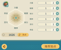 属性分为力量、敏捷、体力、精神、灵巧和幸运这几种,每种属性都有其独特作用,你可依据伙伴的特点来进行点数分配。