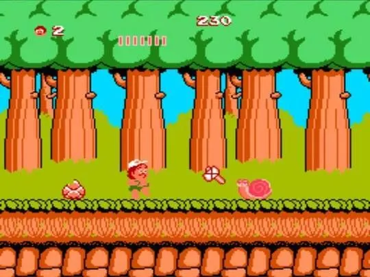 《高桥名人冒险岛》是一款具备经典像素风格的横版2D动作冒险游戏。它从童年经典的PC端游戏移植而来,玩法与《超级马里奥》相似,游戏目标是解救主角高桥名人的恋人。在游戏过程中,玩家要操控角色,在躲避小怪物的同时收集道具物品以获取分数,跑得越远,所获分数就越高。
