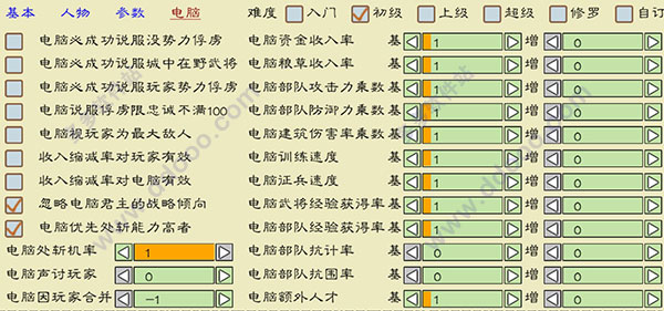 修罗以下均为体验级,无难度。各项参数对应于设置最后一个“电脑”选项卡,
