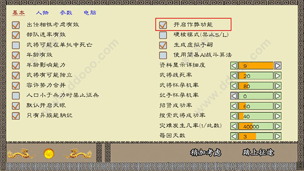 开启后,城池人口少于城池兵力时,将无法征兵,贴合史实。