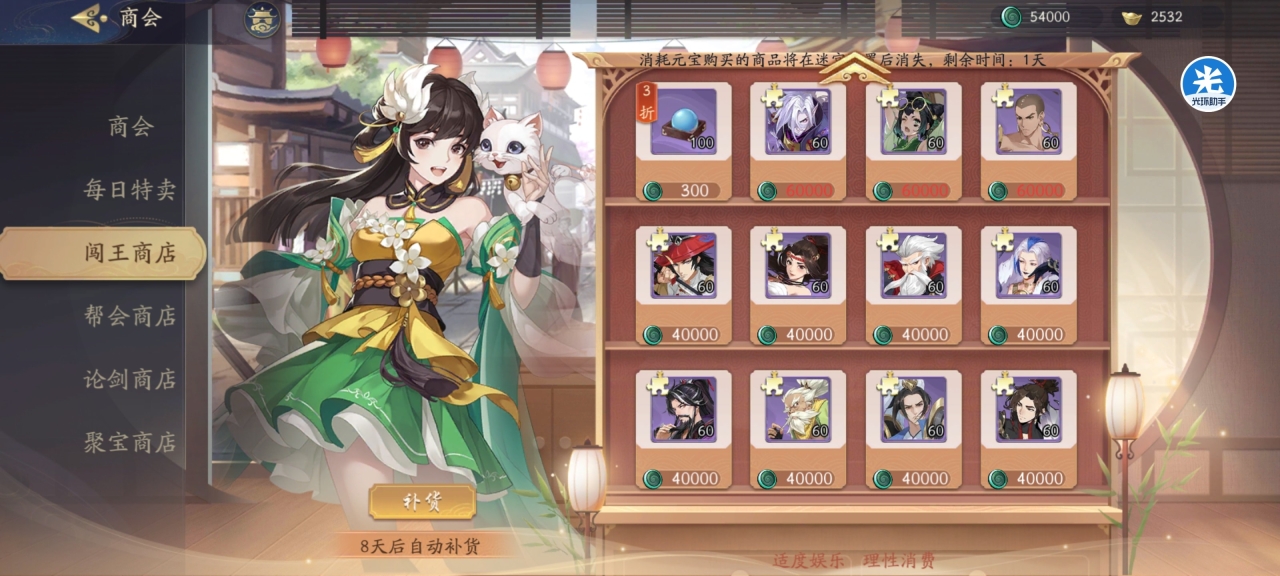 闯王商店起初是一天刷新一次,后来变为两天刷新一次。因此,大部分玩家在游戏前期能迅速积累不少闯币。不过,玩家们千万别随意购买物品,一定要优先兑换大侠。当前只推荐兑换三个价值6万闯币的大侠,毕竟这三位大侠强度颇高。此外,也可以考虑兑换药王,用来在前期提升星级,进而提高练武场等级。