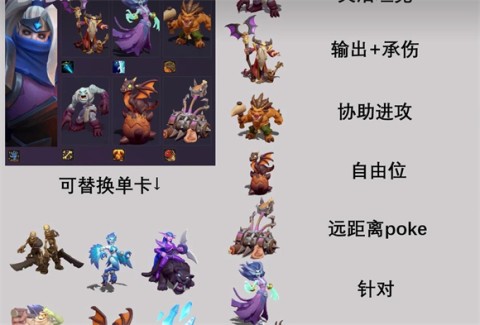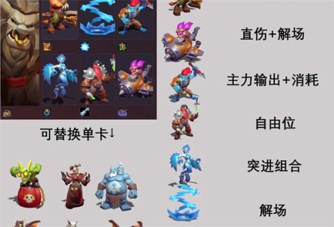 1、吉安娜卡组:以女猎手作为主要输出角色,牛头人担任坦克,剩下的角色可以根据自己的玩法自由搭配。