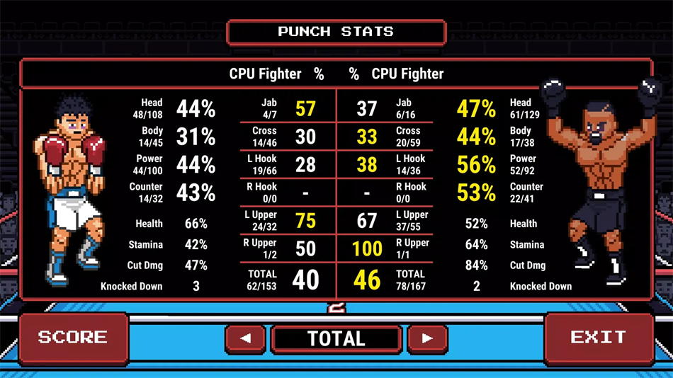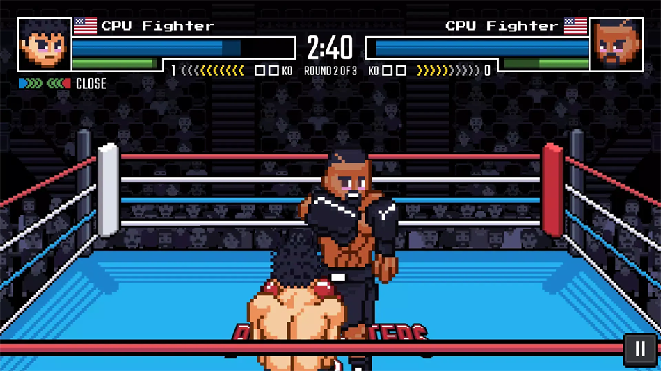 像素画风与动作表现:复古像素风格结合流畅动作设计,呈现拳击手的打击感与动态效果。