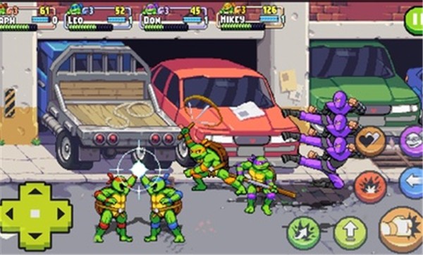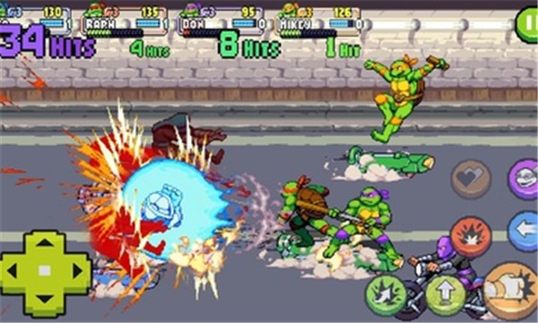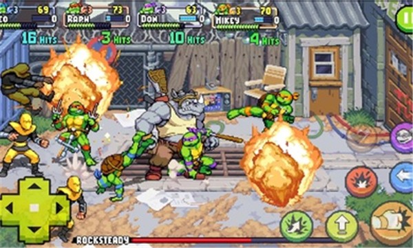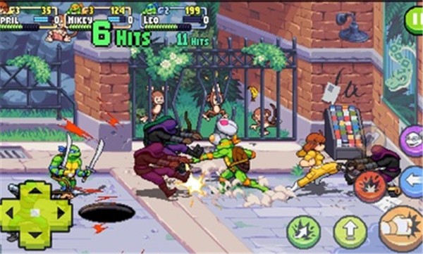 1. 经典格斗场面,再现忍者神龟经典格斗场景,玩家能够于各类场景里开启激烈战斗。