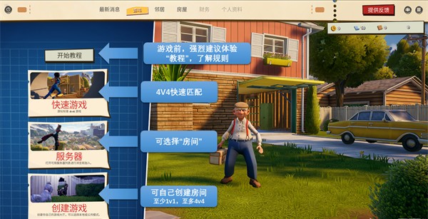 家有恶邻游戏支持多人联机的玩法,在这里玩家需要与讨厌的邻居进行对战,海量角色武器等你来体验,游戏拥有三种不同的玩法模式,玩家可以根据喜好进行体验,对战的过程中还需要加固自己的庭院,防止被对手摧毁,该游戏以邻里战争为核心,喜欢的朋友欢迎。