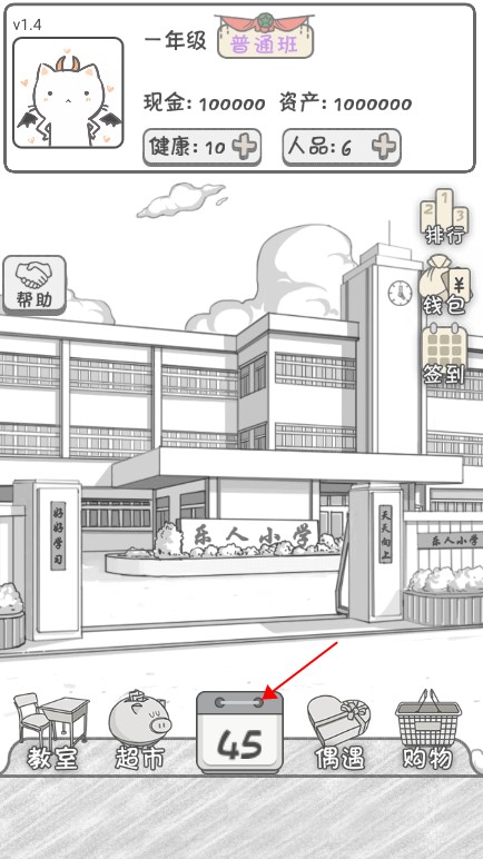 1. 当页面下方的日历倒计时呈现出玩家的学期剩余天数时,玩家需在剩余时间里奋力提升成绩、积攒资金。
