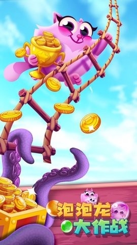4、瞄准继续发射消除泡泡吧,救出小猫就算闯关成功。