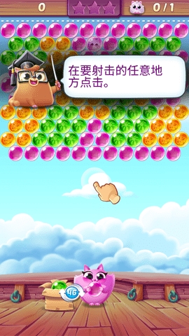 3、用手指点击想要射击的位置,发射泡泡,当有3个及以上相同颜色的泡泡匹配在一起时,这些泡泡就会爆开并被消除。