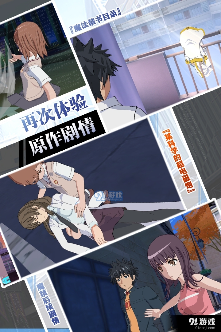 创新UI设计:游戏主界面以男主角上条当麻的宿舍为场景,主要功能以实物形式呈现,如电视机为剧情闯关入口、书架为角色入口等,界面清爽无冗余按键。