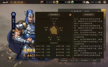 接下来要讲的是武将同样存在属性与五维的区别,这两者并非同一概念。从上面的图示中,大家能了解到武将五维对实战的具体影响:比如敌我武将的武力差距越大,所造成的兵刃伤害就越高;再比如双方武将的运气差距越大,暴击的概率也会相应提升。因此,高品质且五维数值高的武将,在实战里通常都能有更出色的表现。最后还得提一下,像天下无双的吕布,他在武力、统率、毅力和运气这几项五维属性上都十分优秀,但智力却只有12点,这就有点让人哭笑不得了,哈哈……