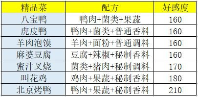 3、当然,任何事情都存在例外情况。其一,我们的蜜汁叉烧,消耗90元宝,可增加170好感度。与之相比,同样消耗90元宝的叫花鸡,好感度增加量比蜜汁叉烧多10点。其二,我们的北京烤鸭,消耗110元宝,能增加210好感度,按照正常算法,它本应增加220好感度。