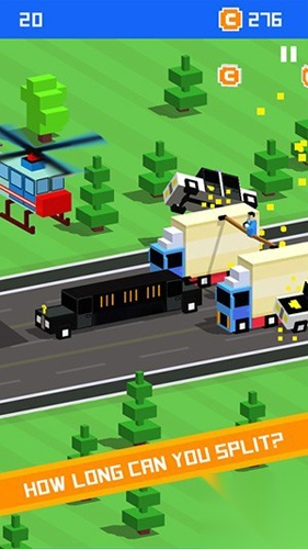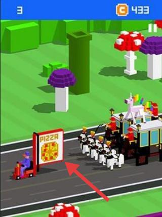1、场景穿越:在像素风场景(蘑菇林、城市道路、沙漠)中,操控角色(披萨车、机器人等)穿越马路,躲避障碍(车辆、巨型生物)。