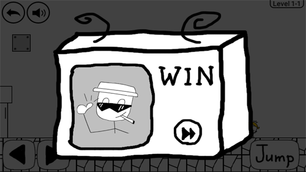 这款游戏运用虚拟按键来进行操作,轻触左边屏幕能够操控小人实现左右移动,而点击右边屏幕则能让小人完成跳跃动作。玩家的目标是跨越诸多障碍,顺利抵达公主身旁。在游戏过程中,会出现红色的“SAVE”图案,只要碰到它,就能储存当下的游戏进度,要是不幸死亡,便可以从这个储存点重新开启游戏。该游戏总计设有6个大关以及36个小关,每一个关卡里都布满了陷阱。玩家不能局限于常规的思考模式,而是得凭借无厘头的方式,才能够成功通过关卡。