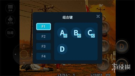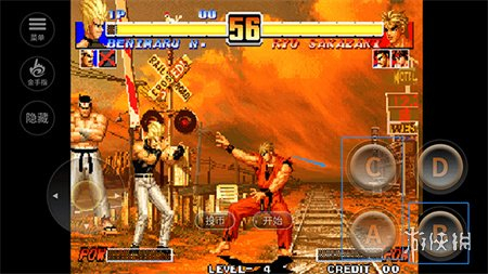 在游戏里,你得同时操控三位角色展开格斗。哪一方率先把对方的三个角色打败,哪一方就能取得胜利。格斗开启后,利用右边的ABCD四个招式按键对对手发动攻击。