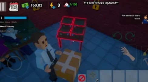 游戏采用俯视角操作,玩家通过鼠标或控制器与场景互动。核心玩法循环是:采购(规划商品清单,前往批发市场以最优价格进货)、上架(将商品搬运至对应货架,注意保质期和摆放美观度)、运营(服务顾客收银、处理突发事件、管理员工排班)以及扩张(用利润升级设备、装修店铺、解锁新区域)。游戏内设有经济系统、顾客满意度系统及市场竞争系统。玩家必须平衡现金流、库存周转率与顾客需求,同时应对物价波动、小偷、设备故障等随机事件。