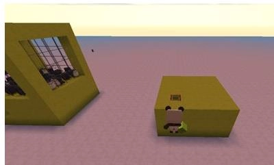 3、然后最上面一层用方块给封上,留个位置放木质窗