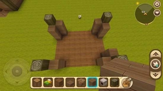 3、砍下之后会有一个小小的木头方块跳出来,靠近它就能自动捡起来!当砍到10个木头后,就可以进行下一步啦。