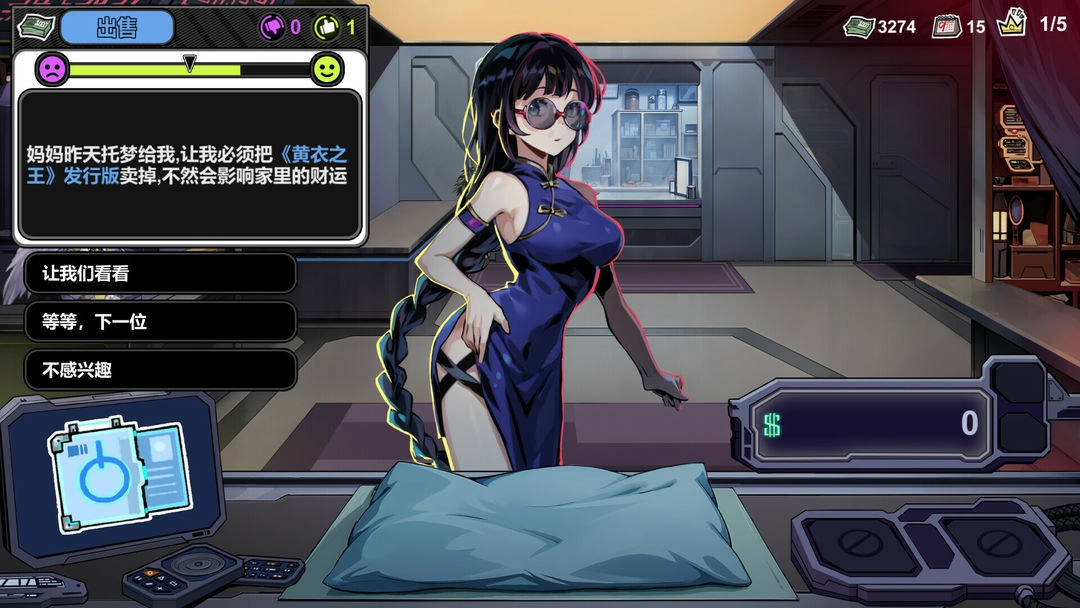 日常经营:接待客人,通过对话和设备检测评估物品价值,结合市场行情与客人迫切程度讨价还价。例如,正面情感记忆价值高昂,来源不明的稀有模块可能暗藏隐患。