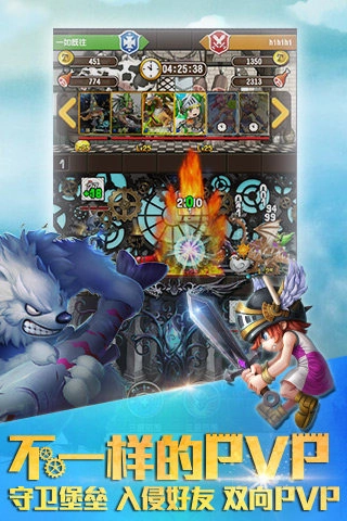 游戏中融入了垂直叠加式复合塔防这一新颖的塔防设计。丰富的卡牌收集系统、英雄养成玩法、新奇有趣的PVP对战,以及类似COC的入侵模式,让游戏在操作体验与感官享受上都达到了上乘水准。玩家能够在游戏里尽情展现浪漫的“骑士精神”,率领一众“萌哒哒”的英雄,将守护公主的使命贯彻到底!