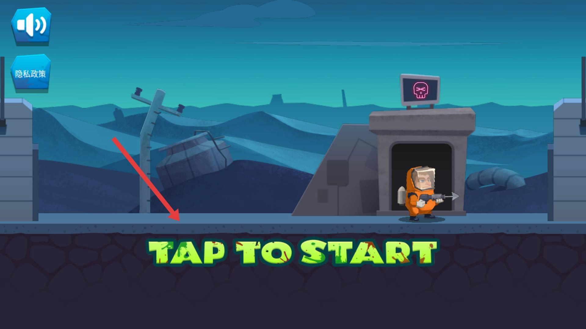 1、点击TAP TO START,进入游戏,操控穿橙色防护服角色,在荒凉场景中开启冒险,准备应对挑战。