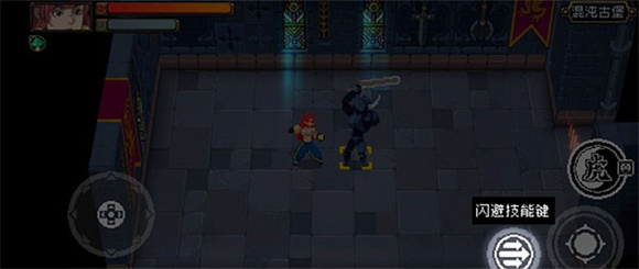 3、战斗场景中会出现文字指引,根据指引点击闪避技能键进行闪避。