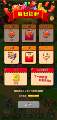 8、每日签到可领取现金奖励、种子、宝箱、化肥等福利,次日起还能获得现金红包,这些现金红包均会直接到账。每天观看10个及以上视频即视为完成当日签到,可对应领取当天的各项福利。