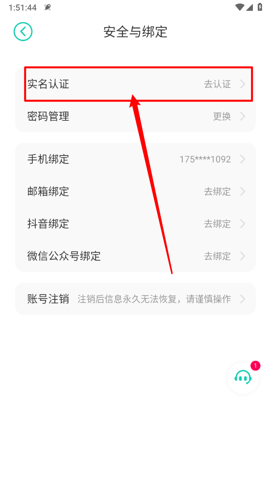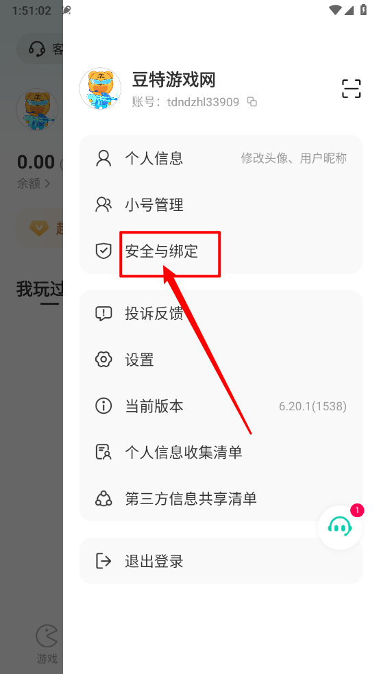 3、如图所示,点击"安全与绑定"进入。