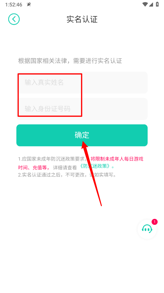 4、进入后根据所需进行实名认证即可进行畅玩游戏。