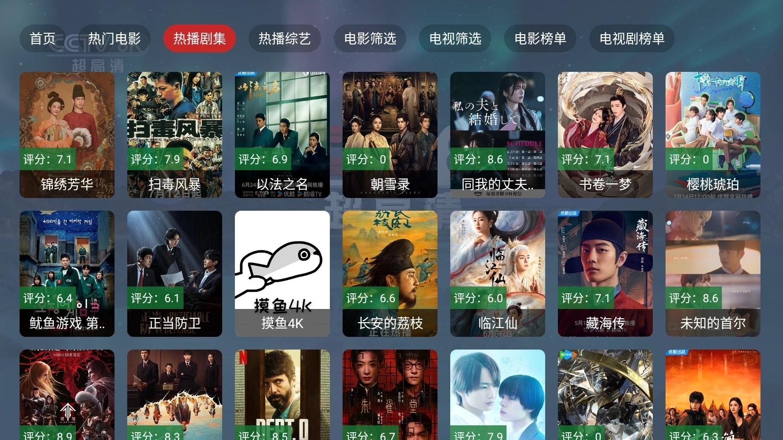 电视剧频道:聚合国内外热播剧集,如国产古装剧、韩剧、美剧等,支持按集数选择观看。